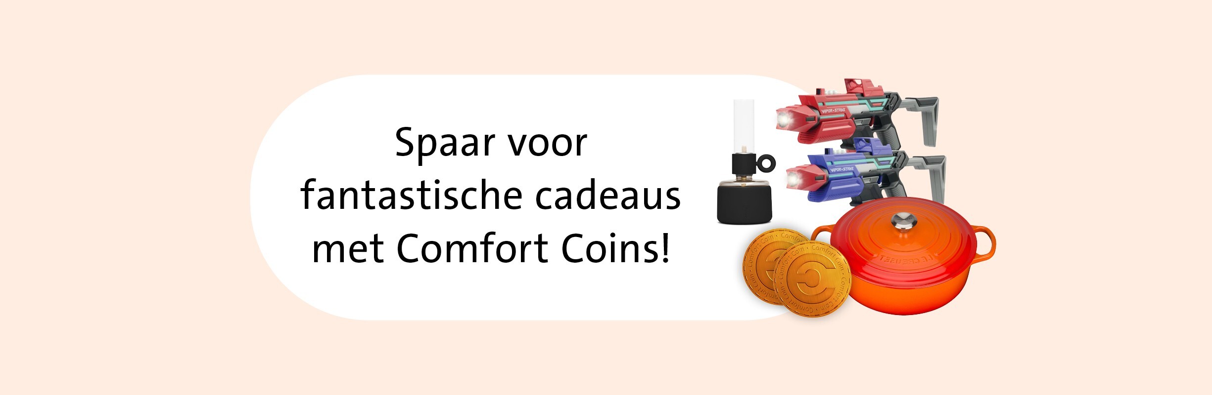 Speciaal voor onze trouwe klanten hebben wij een spaarprogramma ontwikkeld waarbij je kunt sparen voor mooie cadeaus. Voor elke uitgegeven euro spaar je voor Comfort Coins!